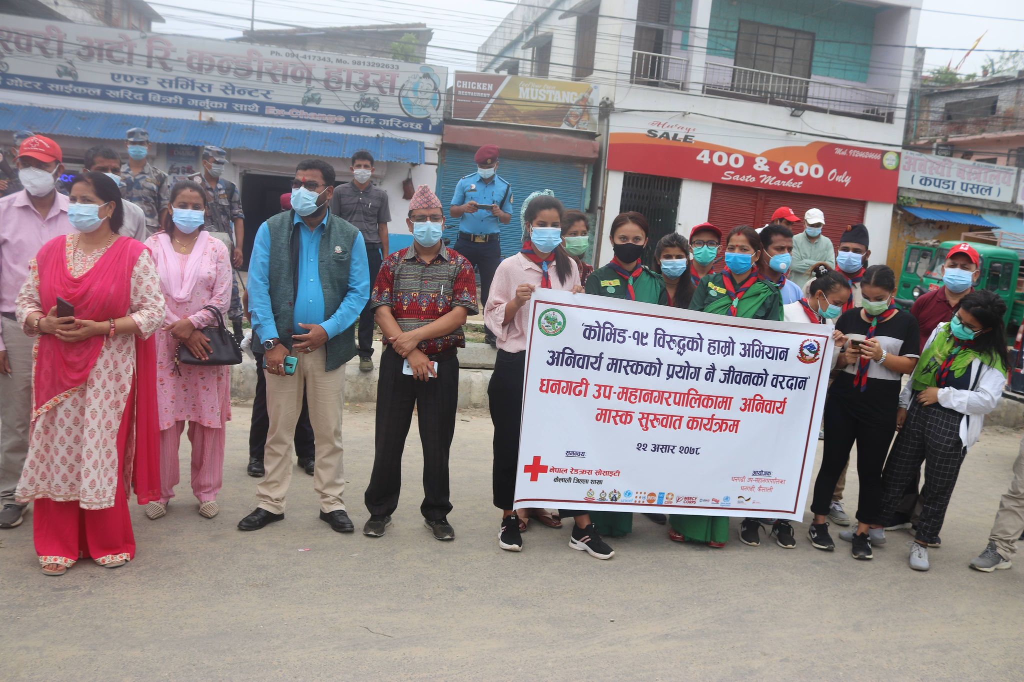 कोरोनाको संक्रमण फैलिने क्रम नरोकिएकाले धनगढी उप–महानगरपालिकाले ‘कोभिड बिरुद्धको हाम्रो अभियान, अनिवार्य मास्कको प्रयोग नै जीवनको बरदान’ भन्ने नाराका साथ अनिवार्य मास्क अभियान शुरु गरेको उपमहानगरपालिकाका नगर प्रमुख नृपबहादुर वडले जानकारी दिए ।