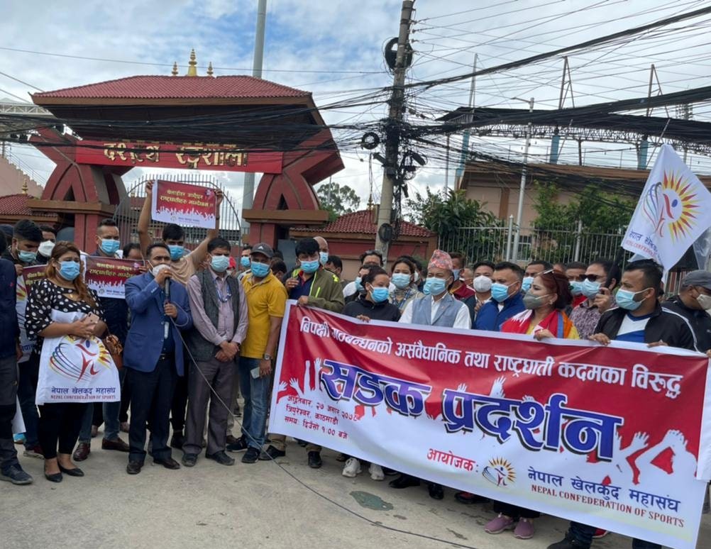काठमाडौं । नेपाल खेलकुद महासंघ (नेकोस)ले विपक्षी गठबन्धनको असंवैधानिक कदमविरुद्ध सडक प्रदर्शन गरेको छ । नेकोसले आइतवार राजधानीमा सडक प्रदर्शन गरेको हो ।