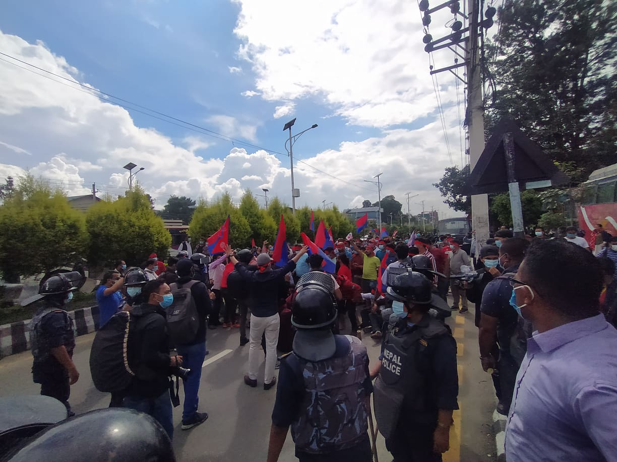 बस्नेतको नेतृत्वमा काठमाडौंको माइतीघरबाट शुरु भएको प्रदर्शन बानेश्वरमा भइरहेको छ ।