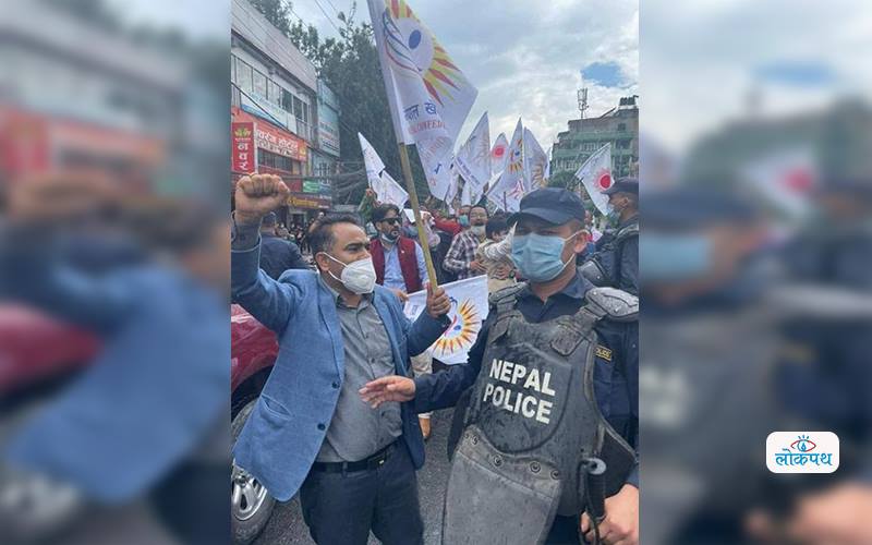 प्रदर्शनमा उत्रियका ओली समर्थक नेताहरुले अदालतको फैसलाले नेपालको लोकतन्त्रमाथि नै प्रश्न खडा गरेको बताएका छन् ।