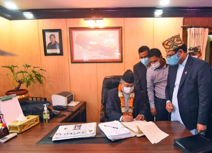मंगलवार शितल निवासमा पद तथा गोपनियताको शपथ ग्रहण गरे पनि उनले मन्त्रीको कार्यभार भने आज सम्हालेका हुन् ।