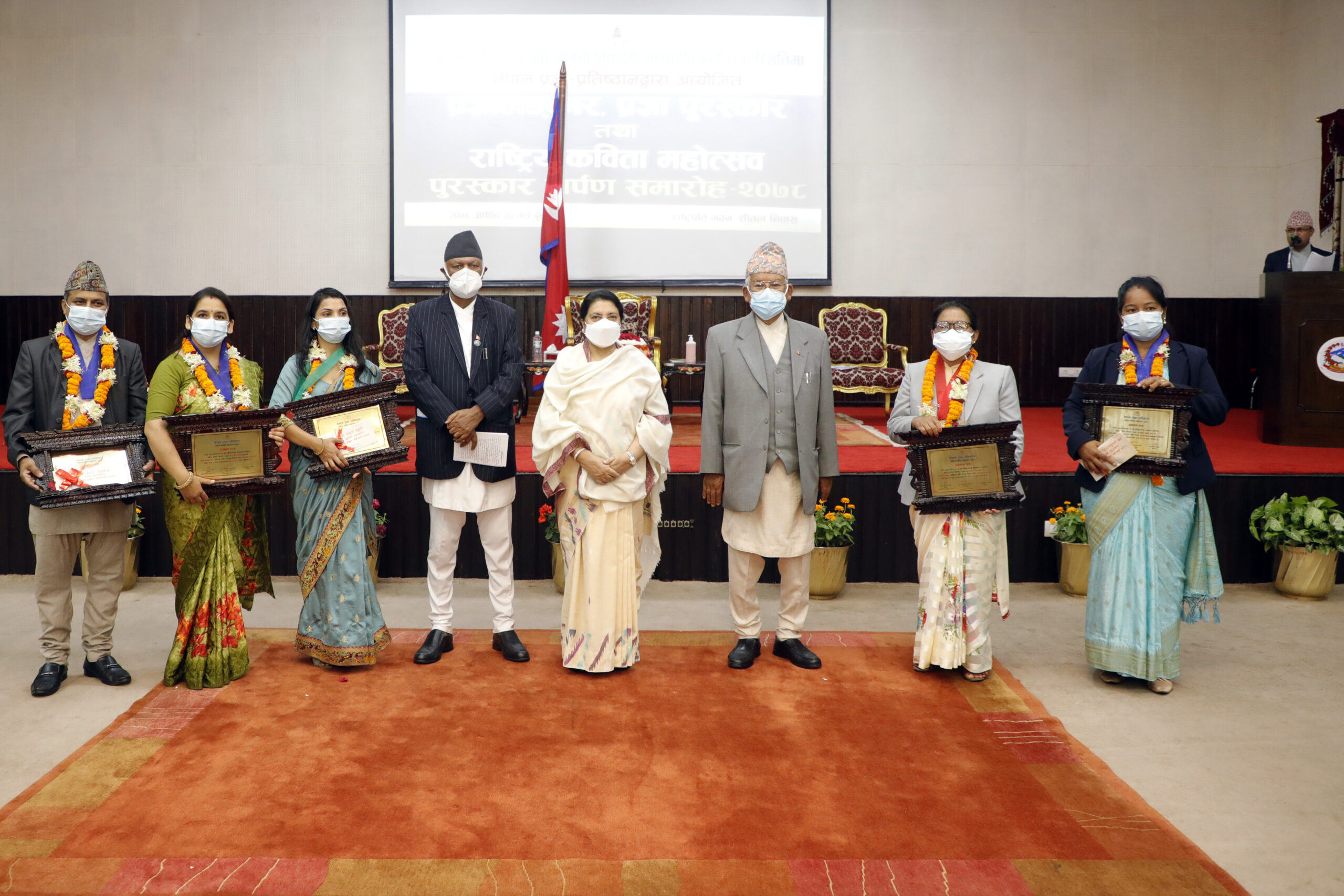 नेपाल प्रज्ञा–प्रतिष्ठानद्वारा राष्ट्रपति भवन शीतल निवासमा आज आयोजित पुररस्कार समर्पण समारोहमा उनले नेपाल प्रज्ञालङ्कार, प्रज्ञा पुरस्कार र राष्ट्रिय कविता महोत्सव पुरस्कारद्वारा २१ प्रतिभालाई सम्मानित एवं पुरस्कृत गरेकी हुन् ।