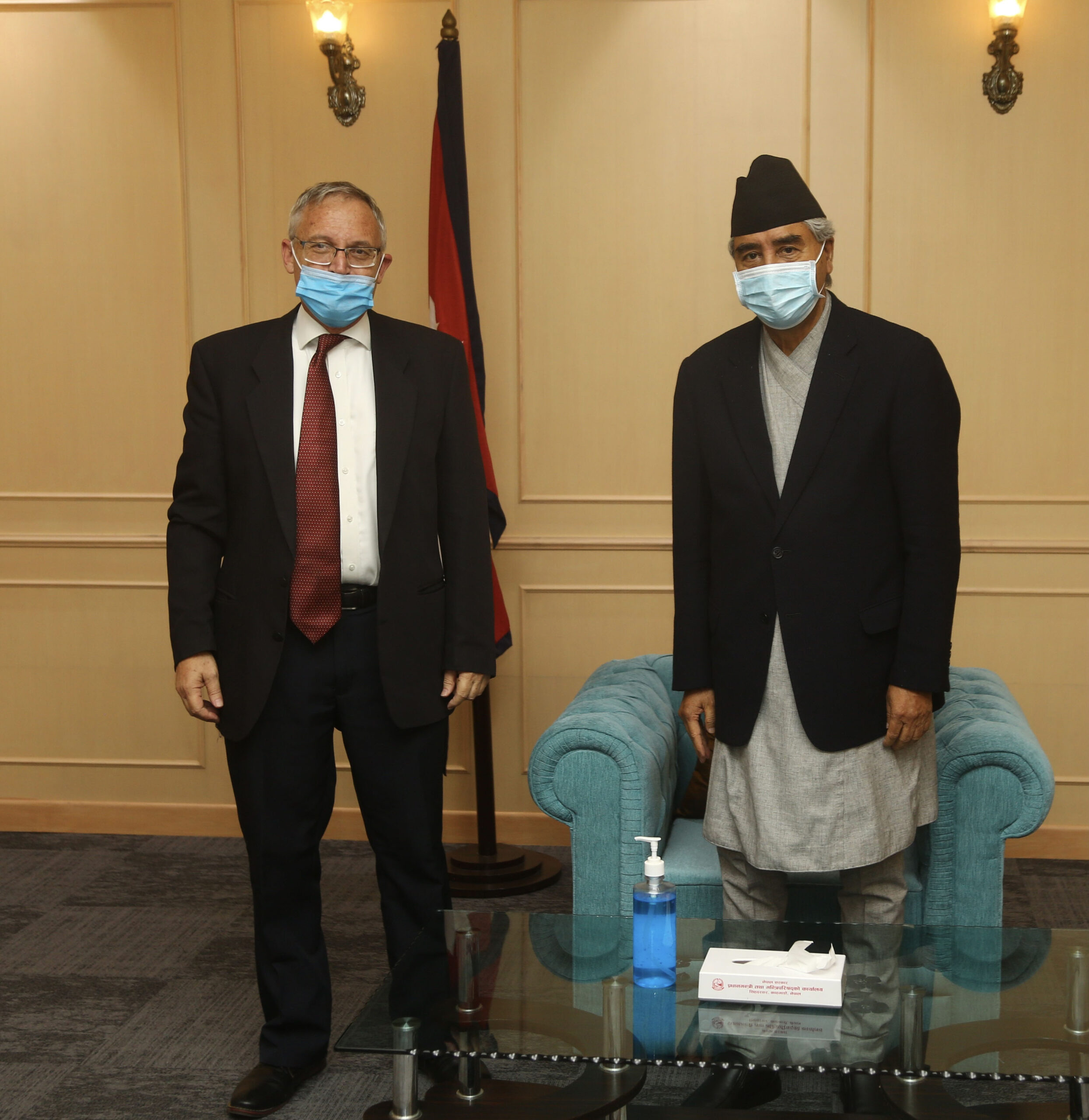 काठमाडौं । प्रधानमन्त्री एवं नेपाली कांग्रेसका सभापति शेरबहादुर देउवासँग नेपालका लागि इजरायलका राजदूत हनन गोडेरले शिष्टाचार भेटवार्ता गरेका छन् ।