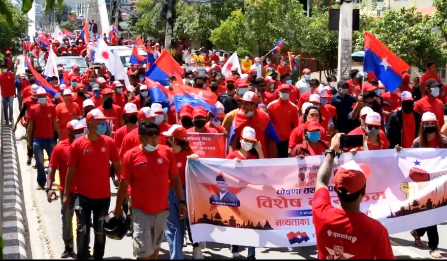काठमाडौं । नेकपा (एमाले) सांसद महेश बस्नेतको नेतृत्वमा युथफोर्सले काठमाडौंमा र्याली निकालेको छ।