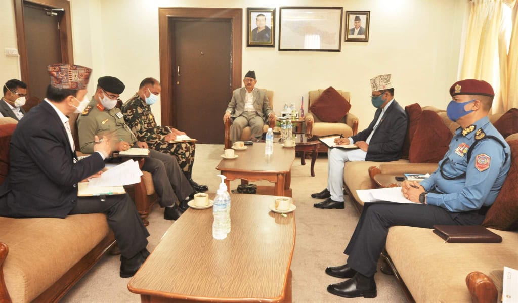 उक्त बैठकमा गृहसचिव महेश्वर न्यौपाने ,नेपाली सेनाका रथी प्रभुराम शर्मा ,प्रहरी महानिरीक्षक शैलेस थापा क्षेत्री ,सशस्त्र प्रहरी महानिरीक्षक शैलेन्द्र खनाल ,राष्ट्रिय अनुसन्धान बिभाग प्रमुख गणेश प्रसाद अधिकारी,रक्षा मन्त्रालयका कामु सचिव आलोकचन्द्र श्रेष्ठ ,गृह मन्त्रालयका प्रवक्ता फणीन्द्रमणि पोखरेललगायत उपस्थित रहेको थियो ।