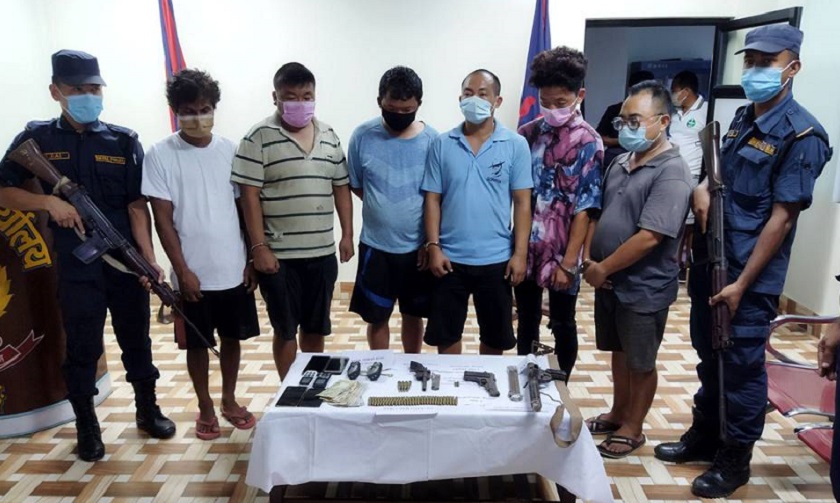 प्रहरीले हतियार देखाई सुन पसल लुट्ने प्रयासमा संलग्न संखुवासभा सभापोखरी गापा ४ घर भई हाल इटहरी उपमहानगरपालिका २० तरहरामा डेरा गरी बस्ने ३९ वर्षीय प्रकाश भन्ने चन्द्रबहादुर राई, सुनसरी गढी गाउँपालिका वडा नम्बर १ बस्ने ४५ वर्षीय डाइमण्ड भन्ने प्रमोद चौधरी, संखुवासभा बाह्रबिसे गाउँपालिका ६ घर भई हाल इटहरी उपमहानगरपालिका वडा नम्बर २० तरहरा डेरा गरी बस्ने ३० वर्षीय चिरञ्जिवी राई, मोरङ सुन्दरहरैचा नगरपालिका वडा नम्बर ५ बस्ने २२ वर्षीय मिशन राई, भोजपुर पौवादुम्मा गाउँपालिका वडा नम्बर ३ घर भई हाल इटहरी उपमहानगरपालिका वडा नम्बर २० तरहरा डेरा गरी बस्ने ३० वर्षीय नगेन्द्र राई र मोरङ सुन्दरहरैचा नपा ७ बस्ने ३१ वर्षीय सन्तोष राईलाई जिल्ला प्रहरी कार्यालय मोरङले पत्रकार सम्मेलन गरी सार्वजनिक गरेको हो ।