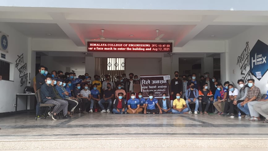 साउन २२ मा हिमालयन कलेज अफ इन्जिनियरिङ कलेजका प्रधानाध्यापकलाई विद्यार्थीले कार्यकक्षमै घेरेर शुल्क समायोजनको माग राखे । उनीसँगै अन्य तीन जना शिक्षक पनि सँगै थिए । कोही शिक्षकको घरमा समस्या थियो उनलाई घर जान दिइयो । औषधि सेवन गर्नुपर्ने शिक्षकलाई औषधि पनि उपलब्ध गराइयो ।