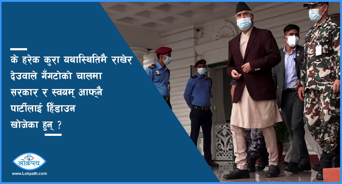 उनले आफू निकटहरूसँग माओवादी केन्द्रका अध्यक्ष पुष्पकमल दाहाल ‘प्रचण्ड’का कारण एमसीसी समावेश नभएको बताउँदै आएका छन् । देउवाले एमसीसीबारे सरकारको धारणा स्पष्ट पार्नुपर्ने थियो । तर देउवाले त्यसो गरेनन् । के हरेक कुरा यथास्थितिमै राखेर देउवाले गँगटोको चालमा सरकार र स्वयम् आफ्नै पार्टीलाई हिँडाउन खोजेका हुन ?