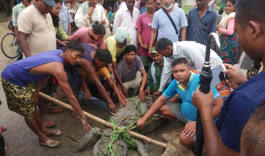 काँडा खोलामा पानीको सतह बढेपछि गोही गाउँ छिरेको हुन सक्ने संरक्षणकर्मी विजयराज श्रेष्ठले बताए ।