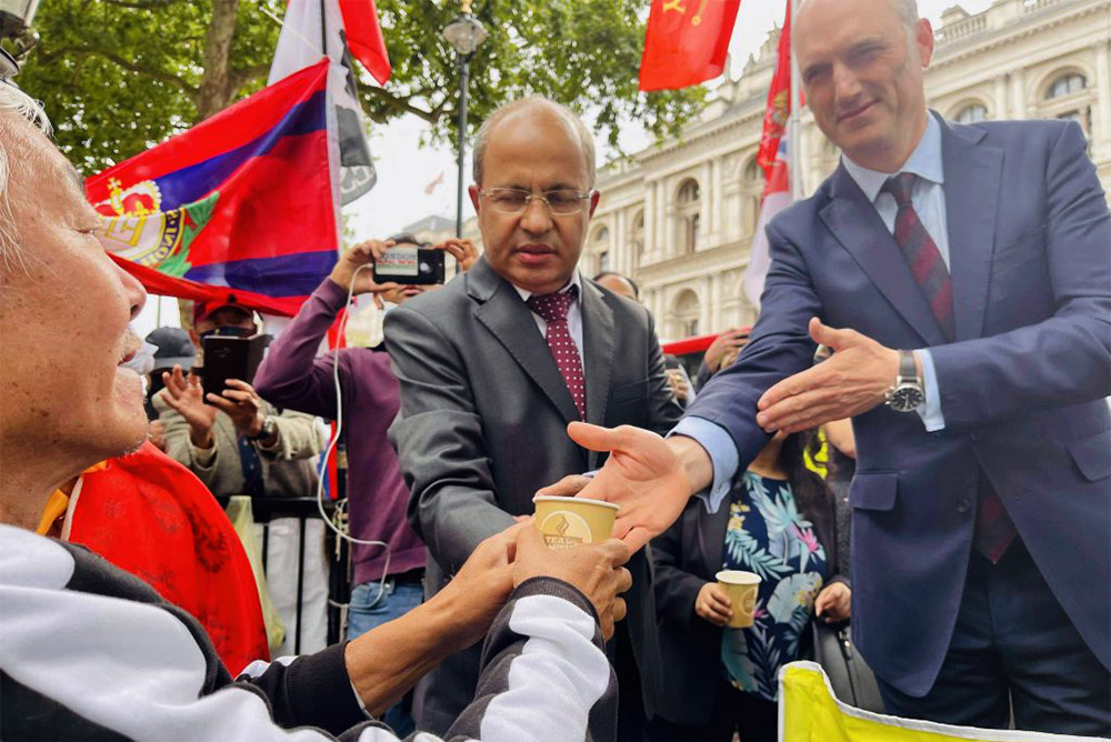 बेलायतका लागि नेपाली राजदूत लोकदर्शन रेग्मी, उपनियोग प्रमुख रोशन खनाल तथा बेलायत सरकारका रक्षामन्त्री लियो डोचर्टीको उपस्थितीमा अनसनकारीले जुस पिएर अनसन तोडेका हुन् ।