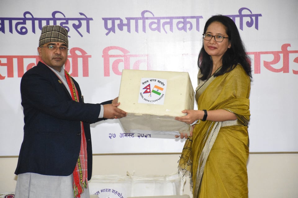 शुक्रबार एक कार्यक्रमको आयोजना गरी नेपालका बाढी प्रभावितहरुका लागि भारत सरकारले नेपाल भारत महिलामैत्री समाज र प्राज्ञिक विद्यार्थी परिषद्मार्फत आठ करोड रुपैयाँबराबरको राहत सामग्री हन्तान्तरण गरेको हो ।