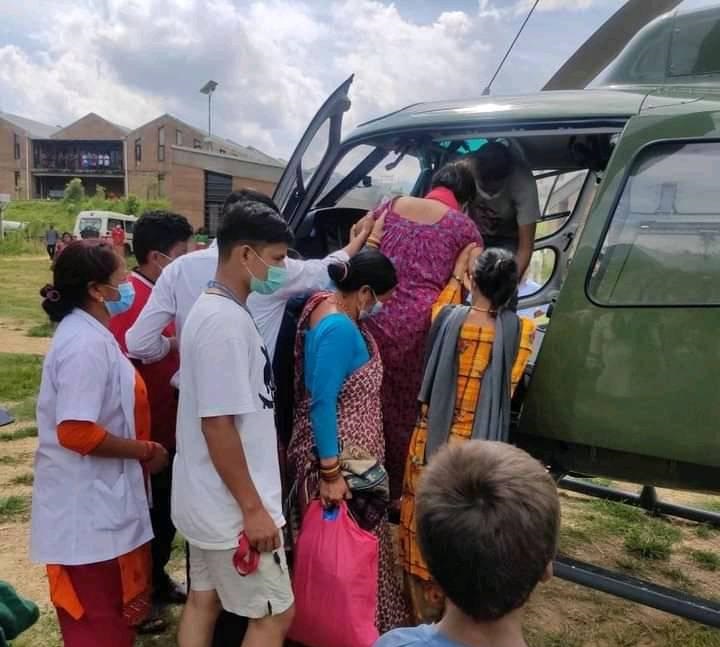 दुर्गम क्षेत्रका ज्यान जोखिममा परेका गर्भवती तथा सुत्केरीका लागि हवाइ उद्धारसम्बन्धी कार्यविधि अनुसार महिला, बालबालिका तथा ज्येष्ठ नागरिक मन्त्रालयमार्फत सञ्चालित कार्यक्रमबाट उनीहरूको उद्धार गरिएको हो ।