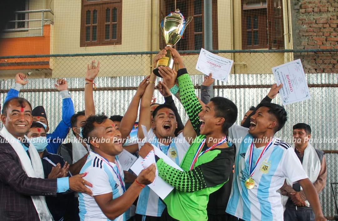 काठमाडौं । प्रथम चुनिखेल युवा परिषद् फुटसल प्रतियोगिता सम्पन्न भएको छ । चुनिखेल युवा परिषद्को आयोजनामा भएको फुटसल प्रतियोगितामा विजेता चुनिखेल चुनदेवी क्लबले ६-१ गोल अन्तरले उपविजेता सोसल वर्कर ओफ नवपुरलाई पछि पार्दै उपाधि चुमेको हो ।