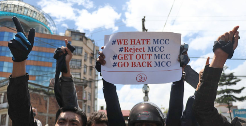 एमसीसीको विरोधमा पुगेका युवाहरुले ‘वी हेट एमसीसी’, ‘गेट आउट एमसीसी’, ‘गो ब्याक एमसीसी’ लगायतका नाराहरु लगाएका थिए । यसअघि पनि नेपालस्थित अमेरिकी राजदूतावासअघि पनि प्रदर्शन भएको थियो ।