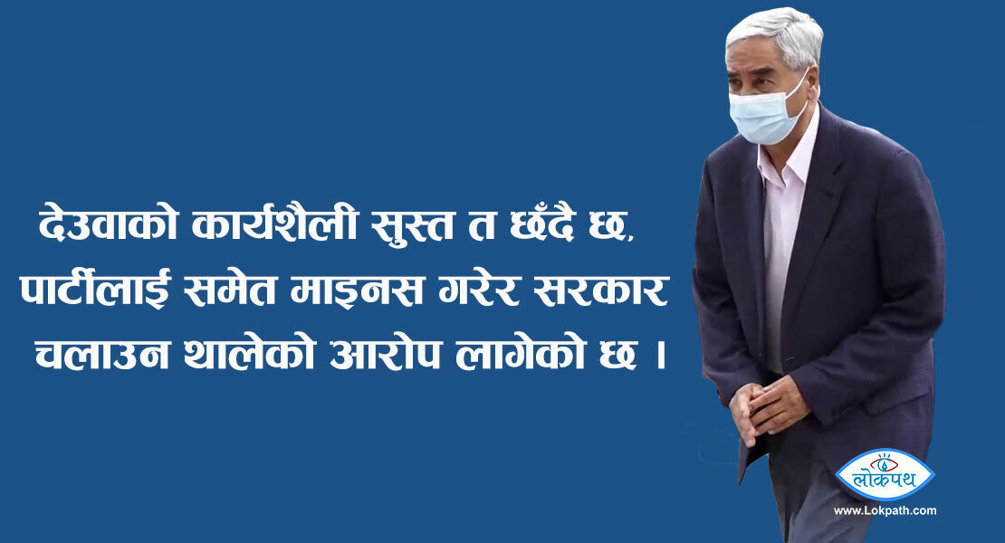 देउवाको कार्यशैली सुस्त त छँदै छ, पार्टीलाई समेत माइनस गरेर सरकार चलाउन थालेको आरोप लागेको छ । विगतमा ओलीको यस्तै कार्यशैलीका कारण उनी सत्ताबाट ओर्लिनु मात्रै परेन पार्टी समेत विभाजन भएको छ ।