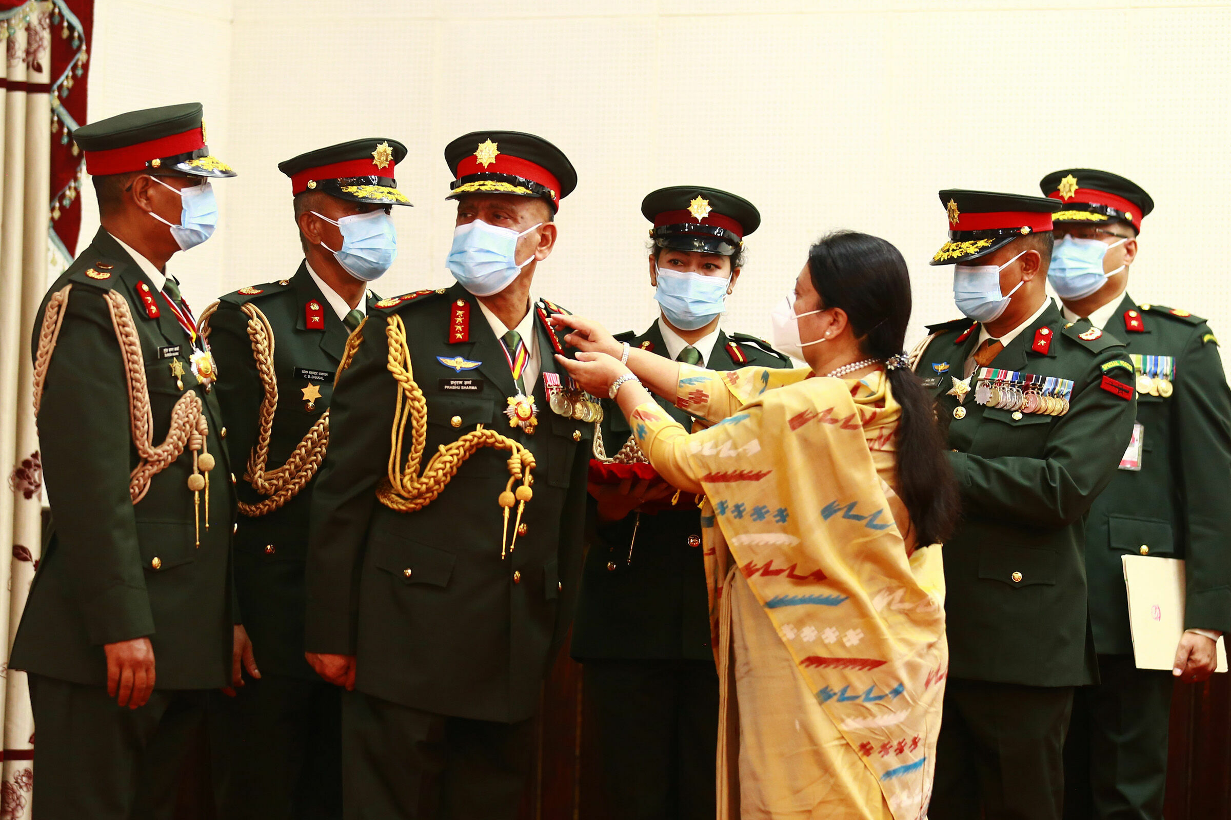 काठमाडौं । राष्ट्रपति विद्यादेवी भण्डारीले नवनियुक्त प्रधानसेनापति प्रभुराम शर्मालाई महारथीको दर्ज्यानी चिह्न प्रदान गरेकी छन् ।