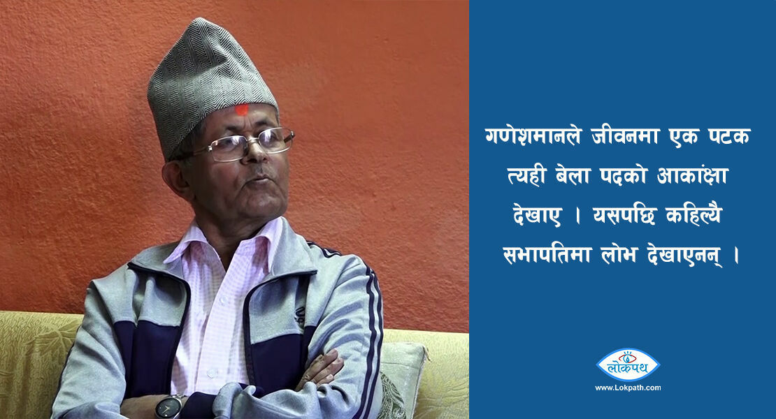 गणेशमानजीले जीवनमा एक पटक त्यही बेला पदको आकांक्षा देखाए । यसपछि कहिल्यै सभापतिको आकांक्षा देखाएनन् । त्याग मात्रै संघर्ष मात्रै । कांग्रेसले समाजवादको नीति पारित गरेको त्यो ऐतिहासिक महाधिवेशनमा सभापतिका लागि जिल्ला जिल्लाबाट मतदान भएको थियो ।
