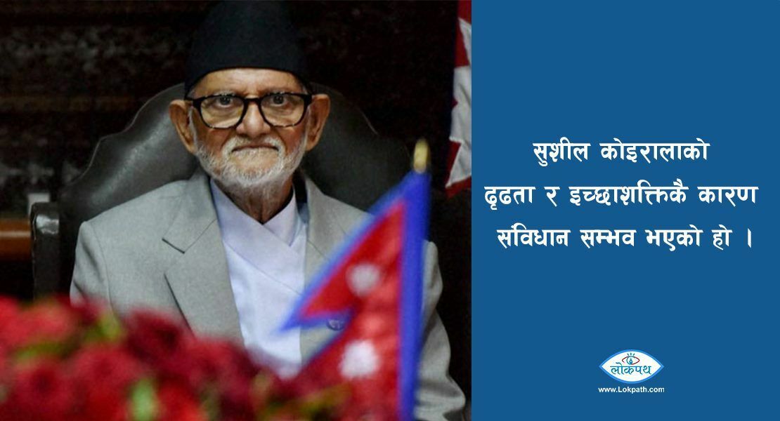 सुशील दाको एउटा प्रतिबद्धता थियो कि, संविधान जारी नगरी म हट्दै हट्दिनँ भन्ने । प्रधानमन्त्री भएपछि एक पटक संविधानसभामा पनि भन्नुभएको थियो, ‘म संविधान नल्याएसम्म सरकारमा रहन्छु, संविधान जारी गरेपछि मात्र छोड्छु ।’