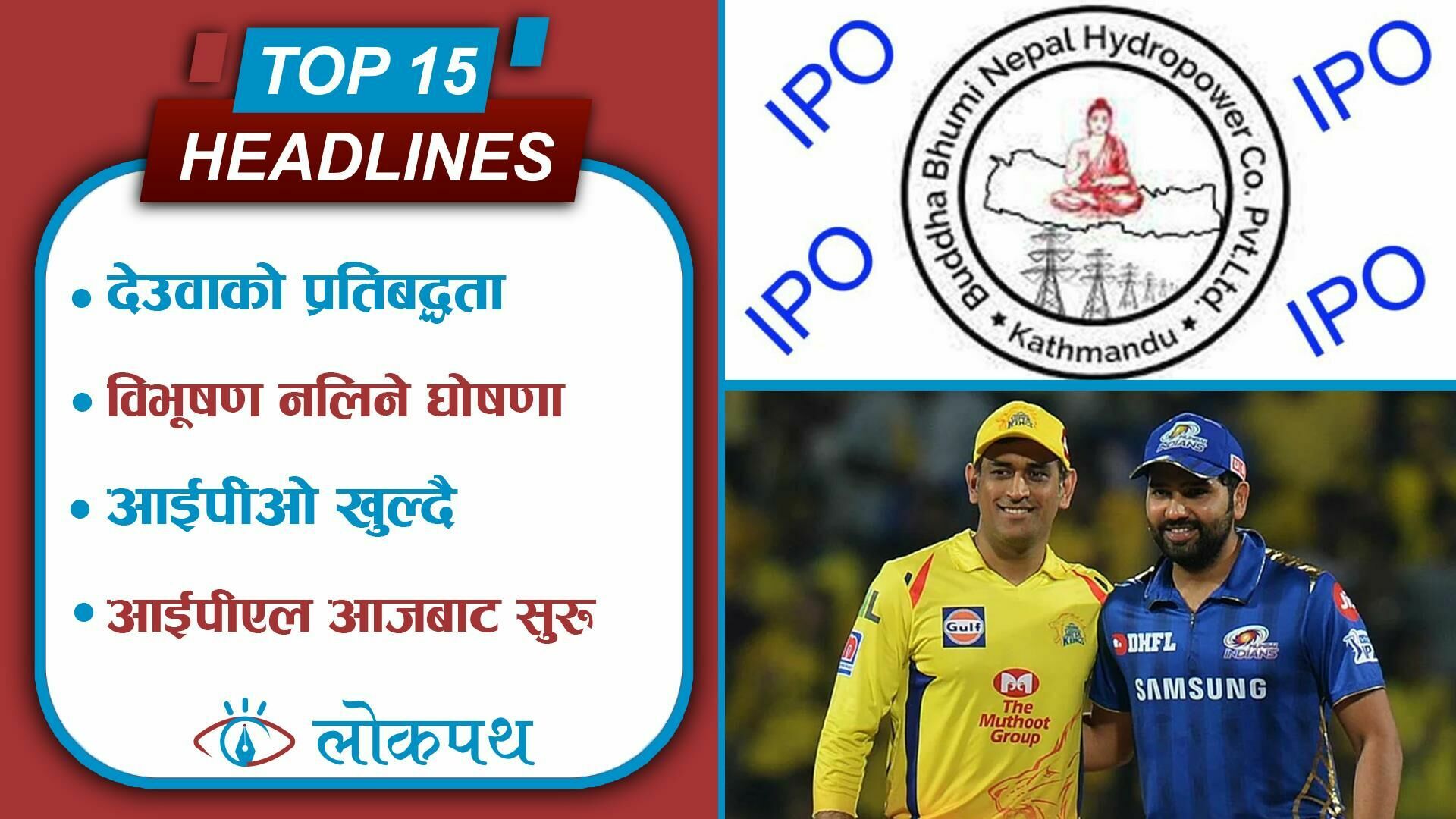 १५. खेलाडीलाई कोरोना देखिएपछि स्थगित भएको आईपीएल आजबाट सुरु, चेन्नई सुपर किंग्स र मुंबई इण्डियन्स भिड्दै