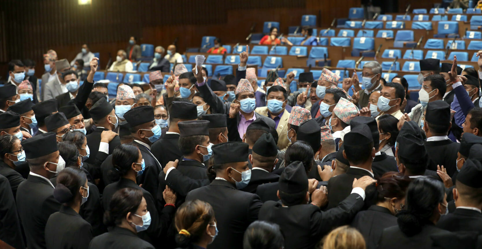 प्रमुख प्रतिपक्षी दल एमालेले संवैधानिक सवोृच्चता कायम गर, विभेदकारी व्यवहार बन्द गरलगायत नाराहरु लगाइरहेका छन् । सभामुख अग्निप्रसाद सापकोटाविरुद्ध नाराबाजी गरिरहेका उनीहरुले एमालेले कारबाही गरेका सांसदहरुको नाम टाँस नगरेको भन्दै आपत्ति जनाउँदै आएका छन् ।