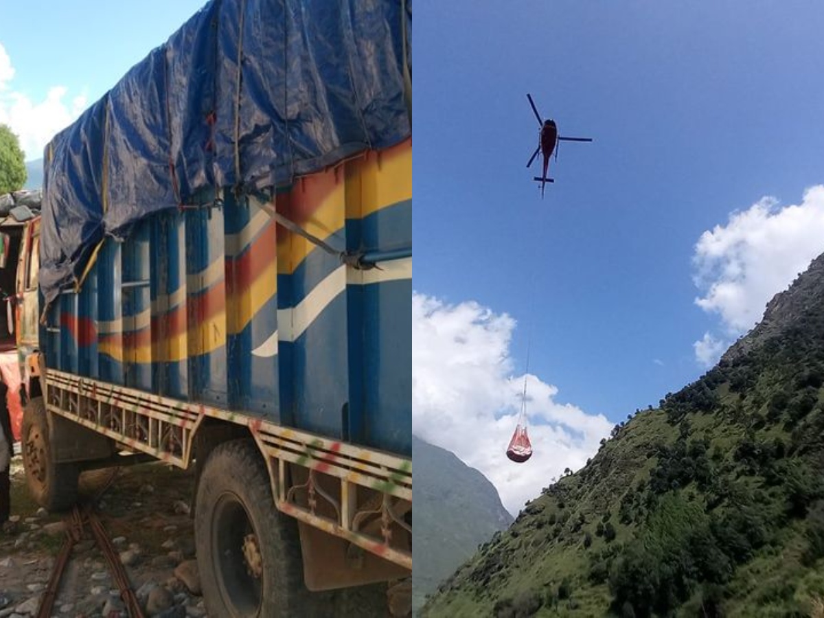 सुदूरपश्चिमका दुई जिल्लामा हेलिकोप्टर र सडक मार्गबाट चामल ढुवानी