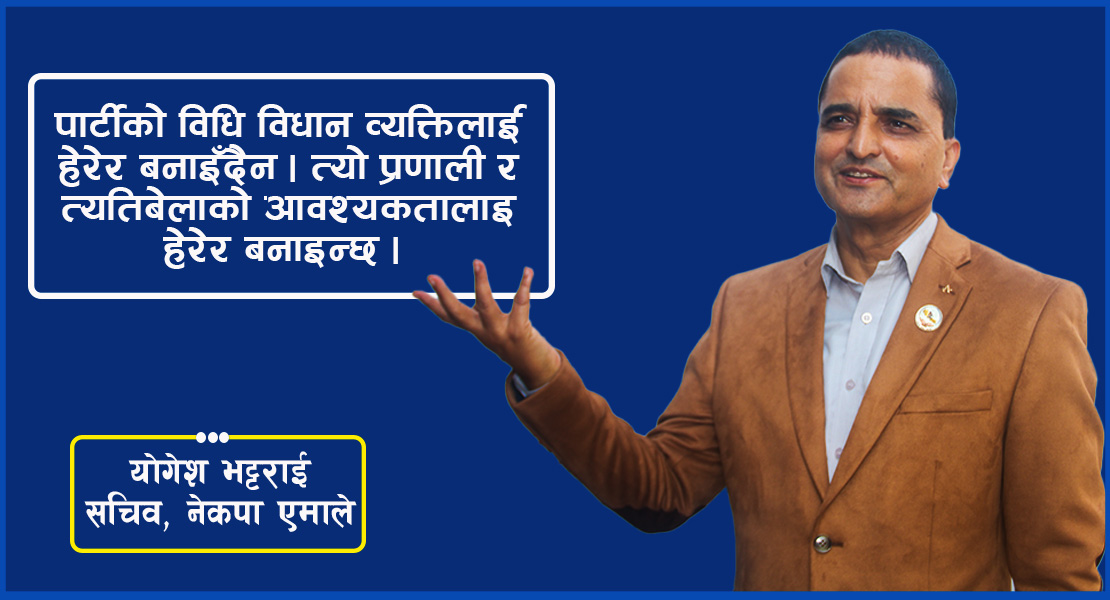 नेकपा एमालेको विधान महाधिवेशन भर्खरै सकिएको छ । विधान महाधिवेशनले दिएको सन्देश, फुटपछिको नेकपा एमाले, वर्तमान सरकारको काम गराइप्रति एमालेको धारणालगायतका विषयमा एमाले सचिव एवं पूर्वपर्यटन मन्त्री योगेश भट्टराईसँग लोकपथका लागि रामेश्वर सापकोटाले गरेको कुराकानीको सम्पादित अंश :