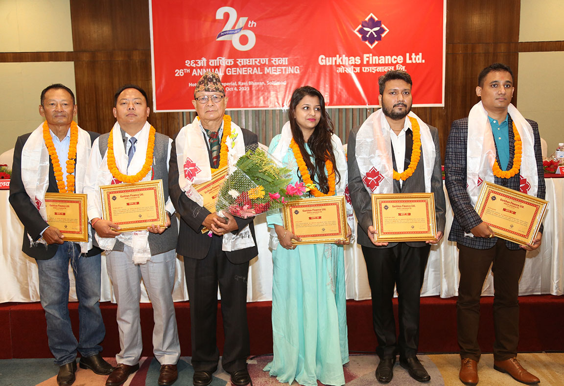 नयाँ संचालन समितीहरु चयन गर्दै गोर्खाज फाइनान्स लिमिटेडको आर्थिक बर्ष २०७६/७७ को २६ औ साधारण सभा होटल क्राउन इम्पेरियलमा आज सम्पन्न भएको छ । साधारण सभाबाट संस्थापक शेयरधनी तर्फ प्रेम बहादुर सापुङ, डेकिन्द्र कुमार राई , कर्ण बहादुर राई, तथा साधारण शेयरधनि तर्फवाट रेसु अग्रवाल, नरेन्द्र कुमार अग्रवाल र गौरव बुढाथोकी चयन भएका छन्। त्यसैगरी स्वतन्त्र संचालकमा प्रधुम्न कुमार भट्टराई रहेका छन् ।