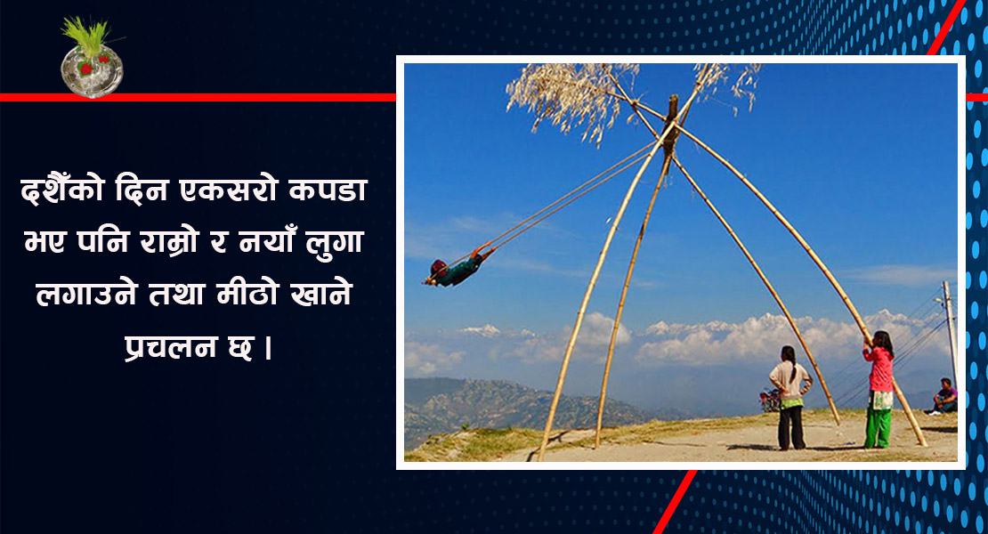 दशैँ नेपालीहरुको महान चाड मात्र होइन कि, चाडपर्वको पनि महान् चाड हो । किनकि दशैँको दिन एकसरो कपडा भए पनि राम्रो र नयाँ लुगा लगाउने तथा मीठो खाने प्रचलन यथावत् छ ।