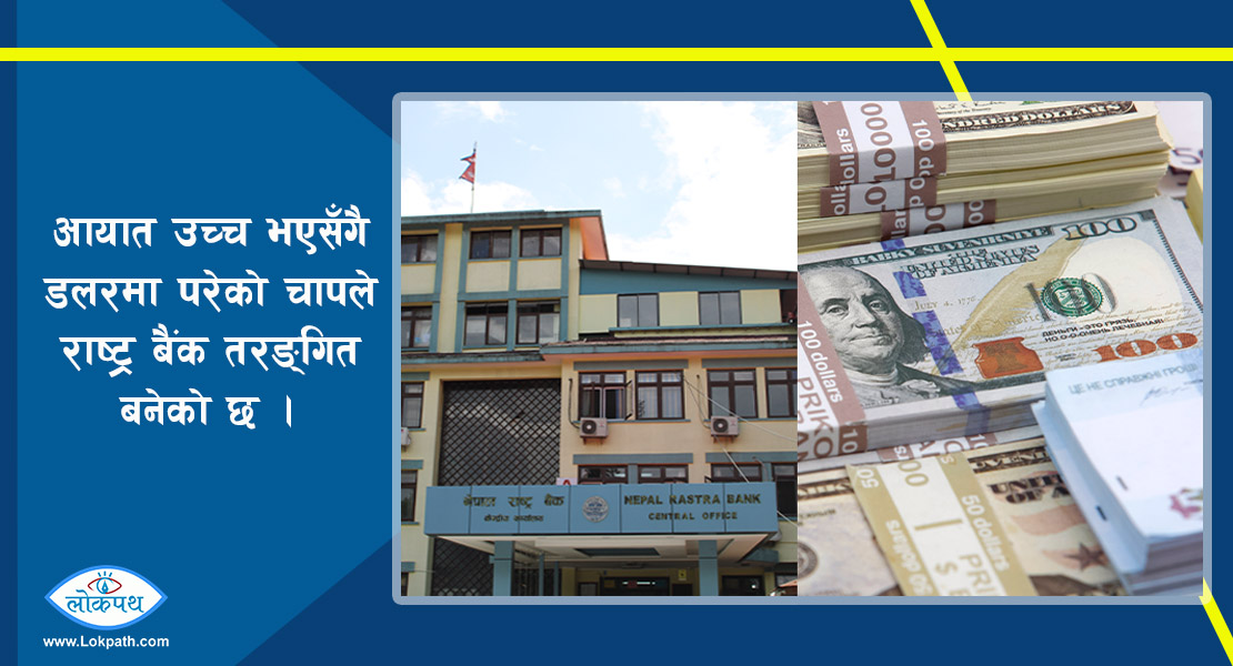 चालू आर्थिक वर्षको पहिलो महिनामा १ खर्ब ५० अर्बबराबरको आयात भएको देखिएको छ । त्यस्तै, भदौमा १ खर्ब ६२ अर्बबराबरको आयात भएको छ । सो समान आयात गर्दा डलरमा भुक्तानी गर्नुपर्ने हुन्छ । त्यसैले डलरको माग बढ्नुका साथै सञ्चितिमा समेत दबाब परेको हो ।
