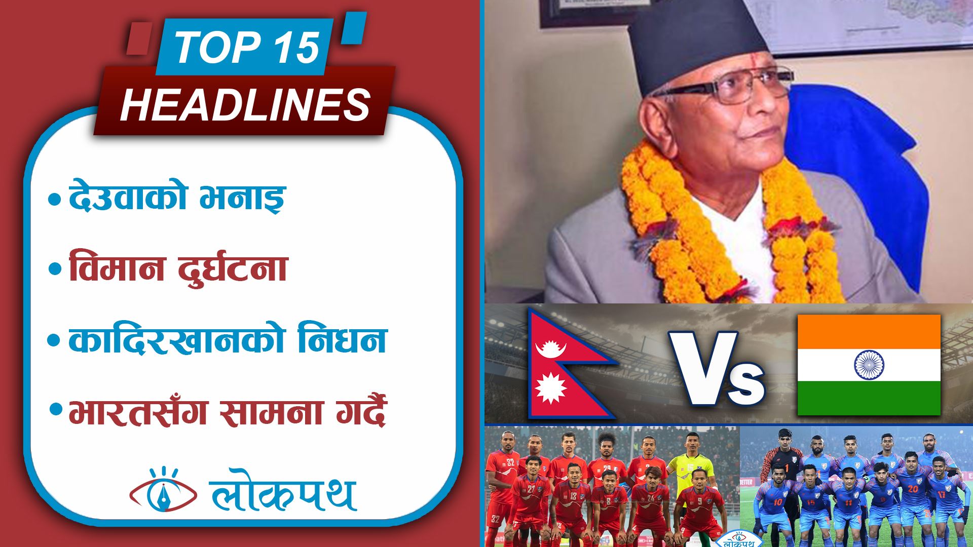 १५.र माल्दिभ्समा जारी साफ च्याम्पियनसिप फुटबलमा आज नेपालले बलियो टिम भारतको सामना गर्दै, भारतलाई पराजित गरे नेपाल फाइनलमा पुग्ने