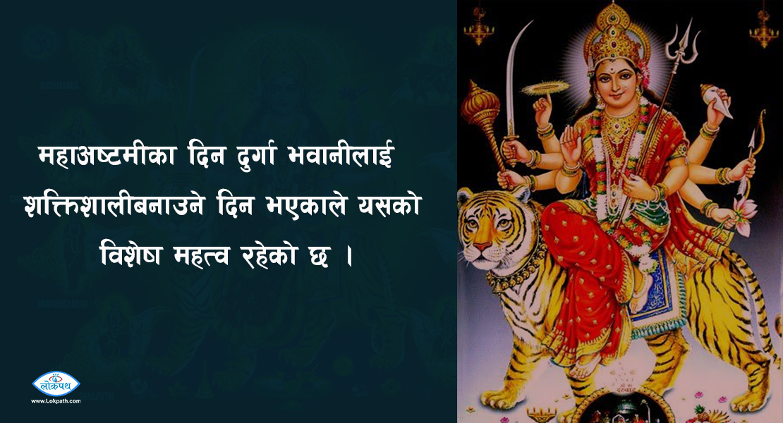 महाअष्टमीका दिन दुर्गा भवानीलाई शक्तिशाली बनाउने दिन भएकाले यसको विशेष महत्व रहेको छ । आजको दिन शास्त्रसम्मतरुपमा दशैँघर, कोतलगायत देशैभरका विभिन्न शक्तिपीठमा पशु बलि दिई दुर्गा भवानीको विशेष पूजाआजा गरिन्छ । महाअष्टमीका दिन दुर्गा सप्तशती, श्रीमद्देवीभागवत् र देवी स्तोत्र पाठ गरिन्छ ।