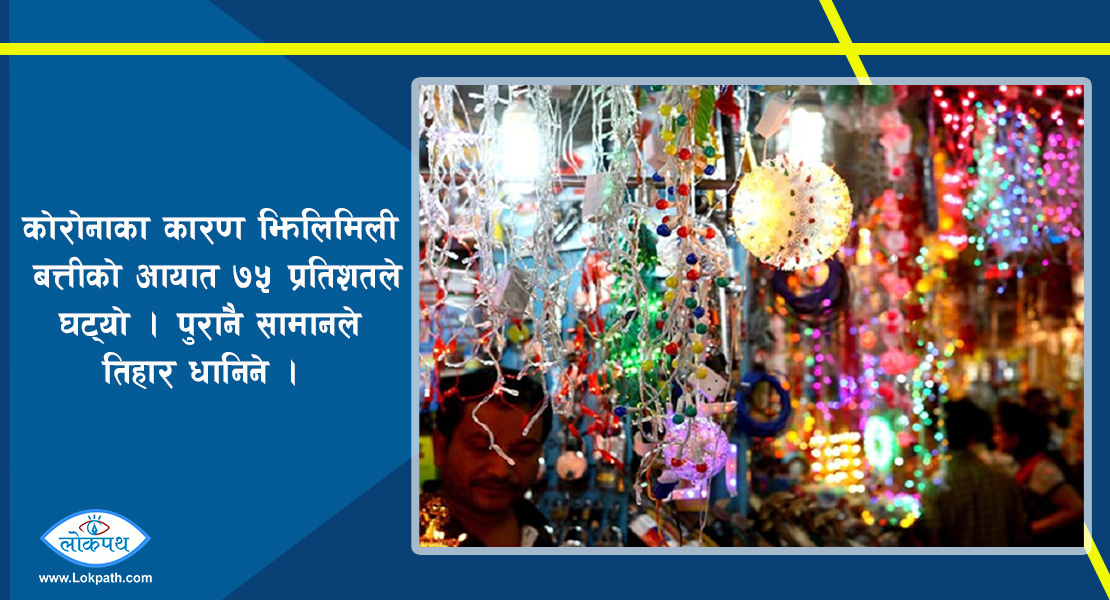 काठमाडौं– कोरोनाका कारण यसपालि पनि तिहारका लागि आधुनिक झिलिमिली बत्तीको आयात कम भएको छ ।