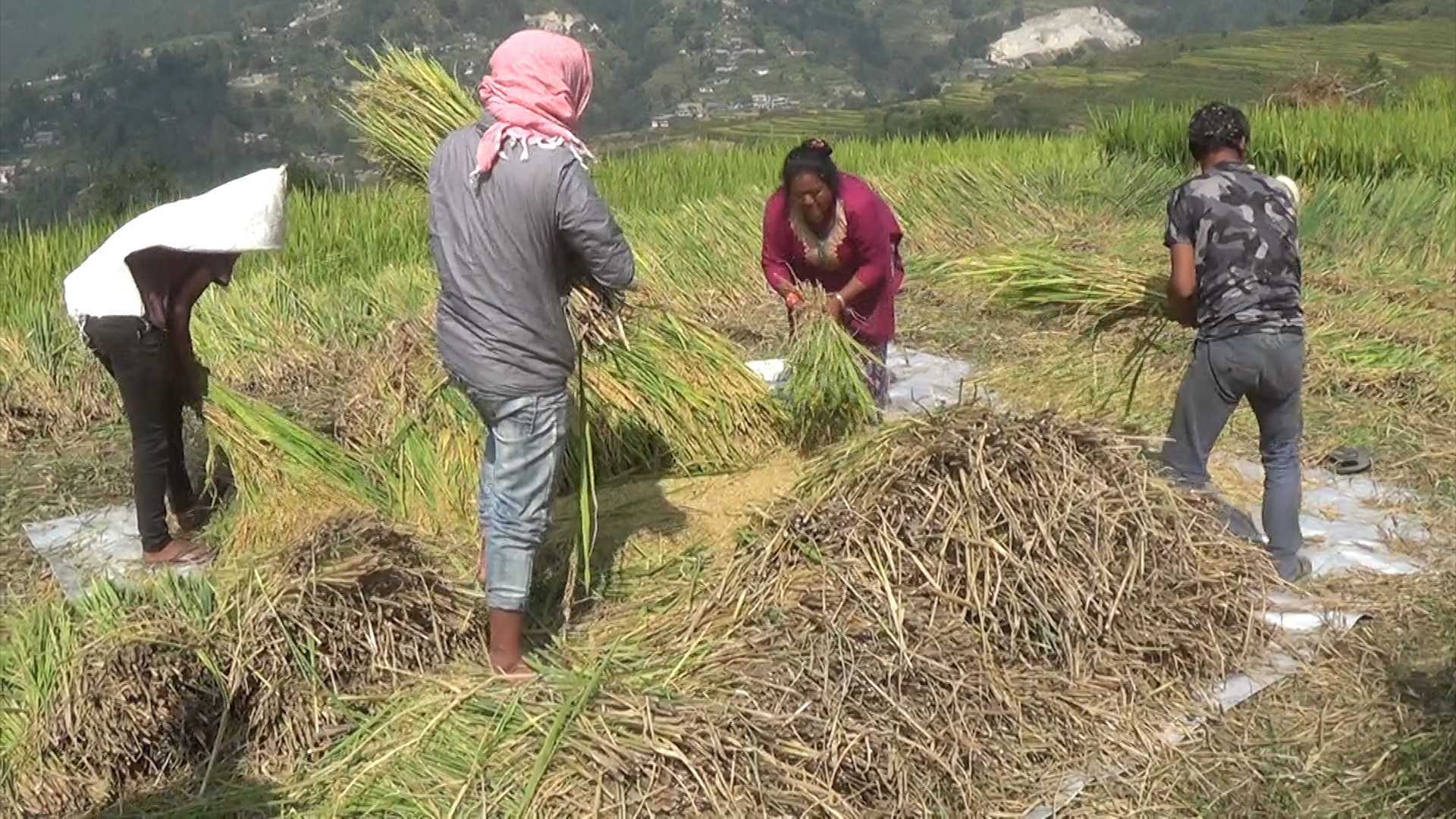 ७ रोपनी खेत पूरै परालमात्र भएको सुनाउँदै चाँगुनारायण नगरपालिका वडा नम्बर ६ नगरकोटका किसान विजय लामा र सावित्री श्रेष्ठले बढी फल्ने धान लगाउन पाए हात मुख जोड्न सजिलो हुन्छ भनेर ७ रोपनीमा लगाएको डी वार्ई २८ गेडा नै नलाग्दा अब के खाने भन्ने अवस्थामा आफू पुगेको उनीहरुले सुनाए ।