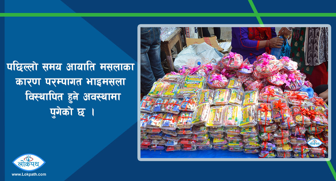 नेपालमा कोरोना संक्रमण सुरु भएसँगै सम्पूर्ण व्यापार व्यवसाय पूर्ण रूपमा ठप्प भए । गत वर्षको तिहारमा कोरोनाकै कारण भाइमसला बिक्री भएन । यसपालि पनि राम्रो कारोबार हुनेमा आंशका छ व्यपारीहरूलाई ।