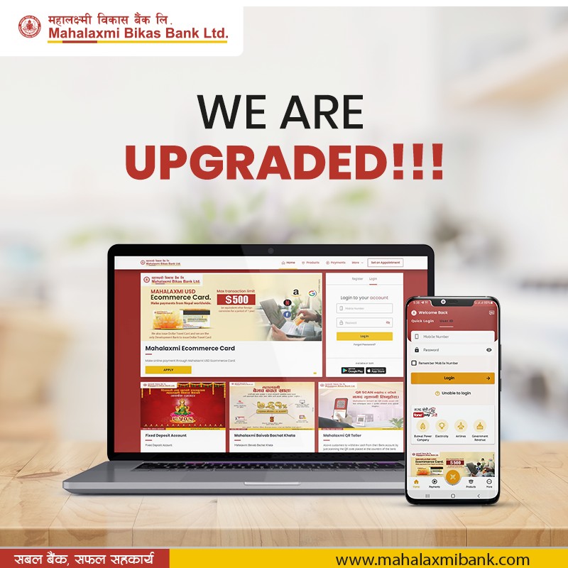 यस प्रयोगकर्ता मैत्रीप्रविधि, BankXP System मा स्तरोन्नत्ती गरेसँगै अब बैंकका ग्राहकहरुले बैंकमा नगई मोबाइल वा कम्प्यूटरका माध्यमबाट घरमै बसीबसी विभिन्न बैंकिङ सेवाहरु सहज रुपमा प्राप्त गर्न सक्ने विश्वास बैंकले लिएको छ । यस सेवालाई प्रयोग गर्नका लागि Android को Playstore र IOS को Appstoreबाट ग्राहकहरुले MahalaxmiBankXP डाउनलोड गर्न सक्नेछन् । यस बैंकको वेबसाइट WWW.mahalaxmibank.com बाट पनि उक्त सेवालाई सजिलै प्रयोग गर्न सकिने छ ।