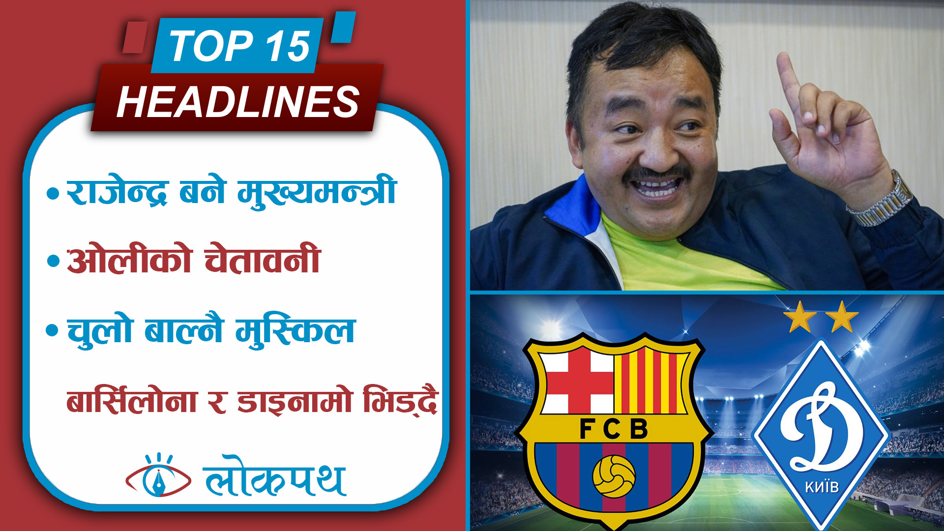 १४. युरोपियन च्याम्पियन्स लिग फुटबलअन्तर्गतको खेलमा आज बार्सिलोना र डाइनामो किभ भिड्दै, घरेलु मैदानमा हुने खेलमा बलियो टिम बार्सिलोनालाई हराउने योजनामा किभ ।