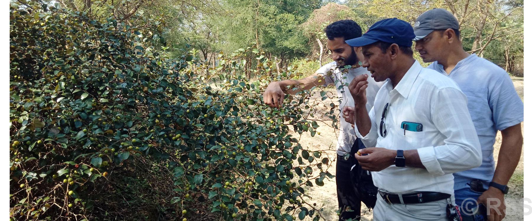 शुक्लाफाँटा नगरपालिका –९ सिसैयास्थित बृन्दावन सामुदायिक वनमा पाकेको बयर खाँर्दै युवा । पाकेको वन बयरको दाना अचारको रुपमा प्रयोग गरिन्छ । तस्बिर- रासस