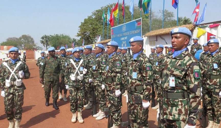 काठमाडौं । संयुक्त राष्ट्रसङ्घको आह्वानमा दक्षिण सुडानमा तैनाथ हुन प्रमुख सेनानी सरोज राणाको नेतृत्वमा चन्दननाथ गणको आठौं डफफाको पहिलो शान्ति सेना टोली मंगलबार त्यसतर्फ प्रस्थान गरेको छ ।