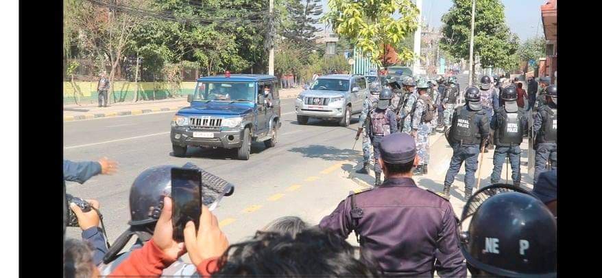 कानुन व्यवसायीहरुले मूल गेटमा उनलाई रोक्न आन्दोलन जारी राखेका बेला अर्कै गेट प्रयोग गरी साइरन बजाएर सर्वोच्च अदालत प्रवेश गरेका हुन् ।