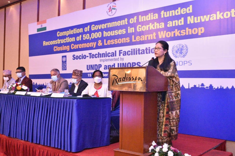 प्रमुख कार्यकारी अधिकृत ज्ञवालीले भने, ‘नेपालमा २०७२ सालको महा भूकम्पमा ध्वस्त भएका संरचनाहरुको पुनः निर्माणको लागि भारत सरकारले धेरै सहयोग गरेको छ, यसको लागि म भारत सरकारलाई धन्यवाद भन्न चाहन्छु, निजी निवास पुनर्निर्माणमा गरेको सहयोगले नै आज हामीले गोरखा र नुवाकोटका ५० हजार घर पुनर्निर्माण सम्पन्न गरेका छौँ, हामीलाई भारत सरकारले प्राविधक र सामाजिक क्षेत्रमा गरेको सहयोग उल्लेख्य छ ।’