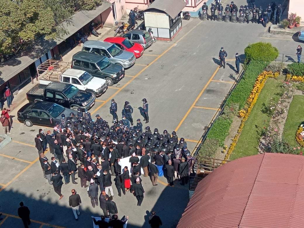 काठमाडौं । प्रधानन्यायाधीश चोलेन्द्र शमशेर जबराविरुद्ध आन्दोलनरत कानुनव्यवसायीहरु आज पनि सर्वोच्च पुगेका छन् ।