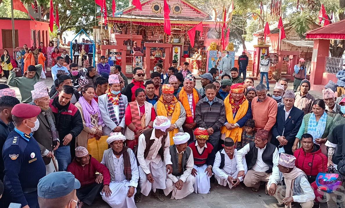 डोटीको प्रशिद्ध शैलेश्वरी मन्दिरमा आएका नेपाल कम्युनिष्ट पार्टी (एकीकृत समाजवादी) का अध्यक्ष माधवकुमार नेपाल र संस्कृति, पर्यटन तथा नागरिक उड्डयनमन्त्री प्रेमबहादुर आले । तस्बिर रासस