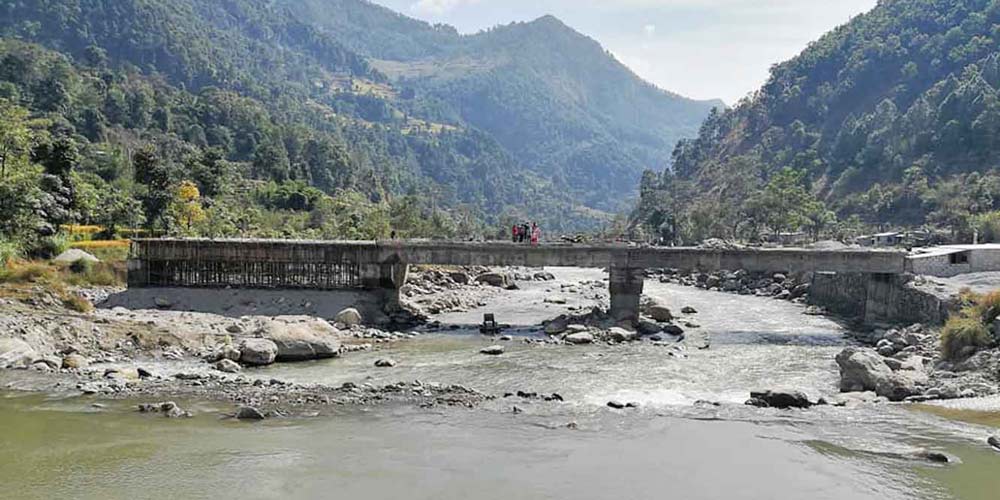 जलविद्युत् आयोजनाको बाँध स्थानानान्तरण भएपछि पुल निर्माण सुरु गर्ने तयारी गरेको अवस्थामा विसं २०७७ असारमा आएको बाढीले निर्माणस्थललाई क्षतविक्षत बनाएपछि पुनः सर्वेक्षण गरिएको थियो । पूर्वाधार विकास कार्यालयका प्रमुख सन्तोष अर्यालले डिजाइन परिवर्तन गरेर पहिलेकै निर्माण व्यवसायीमार्फत पुल निर्माण गराउन लागिएको बताए ।