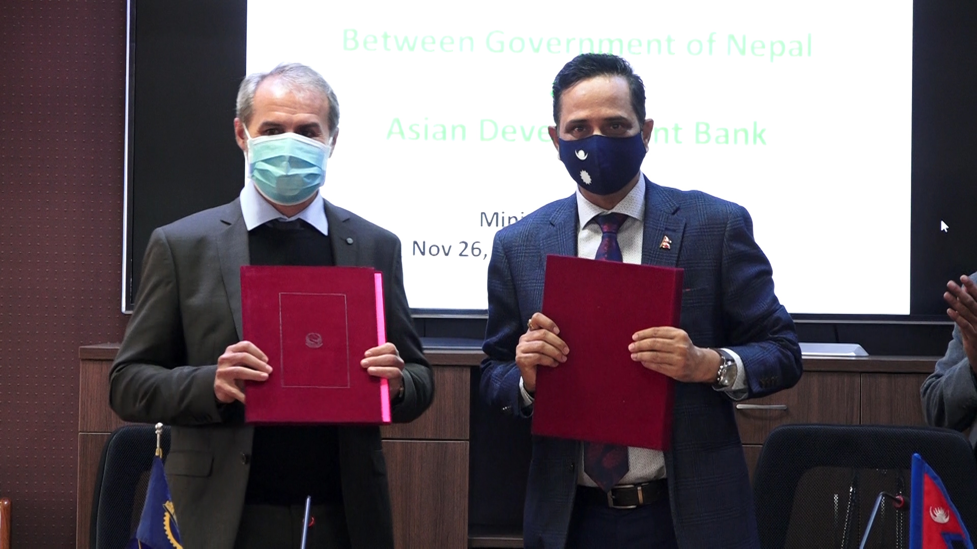 शुक्रबार अर्थमन्त्रालयमा भएको एक कार्यक्रममा एसियाली विकास बैंक (एडिबी) र अर्थमन्त्रालबीच नेपालको ऊर्जा क्षेत्रको विकासको लागि ऋण सहायता सम्बन्धी सम्झौता भएको हो । सम्झौतामा अर्थमन्त्रालयका सचिव मधुकुमार मरासिनी र एडिबीकोतर्फबाट नेपाल निर्देशक अर्नाउड काचोइसले हस्ताक्षर गरे ।
