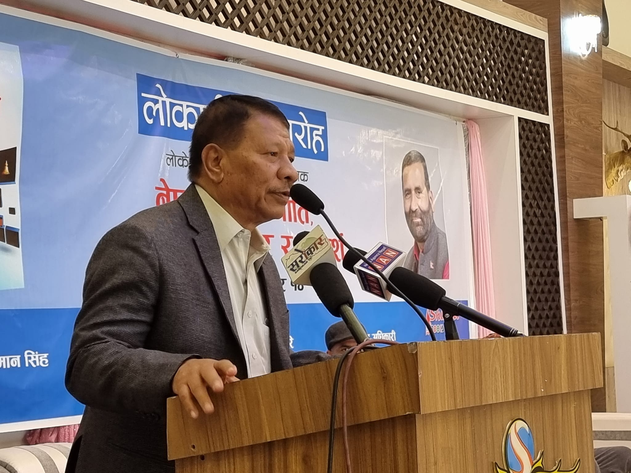 मंगलबार लोकेश ढकालद्वारा लिखित पुस्तक ‘नेपाली राजनीति, राष्ट्रप्रेम, विचार र आदर्श’ लोकार्पण समारोहमा बोल्दै नेता सिंहले नेपाली कांग्रेसमा आदर्श र मूल्य, मान्यताको राजनीतिलाई महत्व नदिई शक्तिकेन्द्रित राजनीतिलाई जोड दिन थालिएको बताए ।