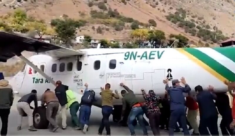 प्रेम रौले/बाजुरा । चारपाङ्ग्रे हलुका सवारीसाधनलाई मानिसहरुले धकेलेको त तपाईं हामी सबैले देखेका छौं । तर बुधबार कोल्टी विमानस्थलमा एउटा फरक दृश्य देखियो, यात्रुहरुले नै जहाज धकेलिरहेको ।