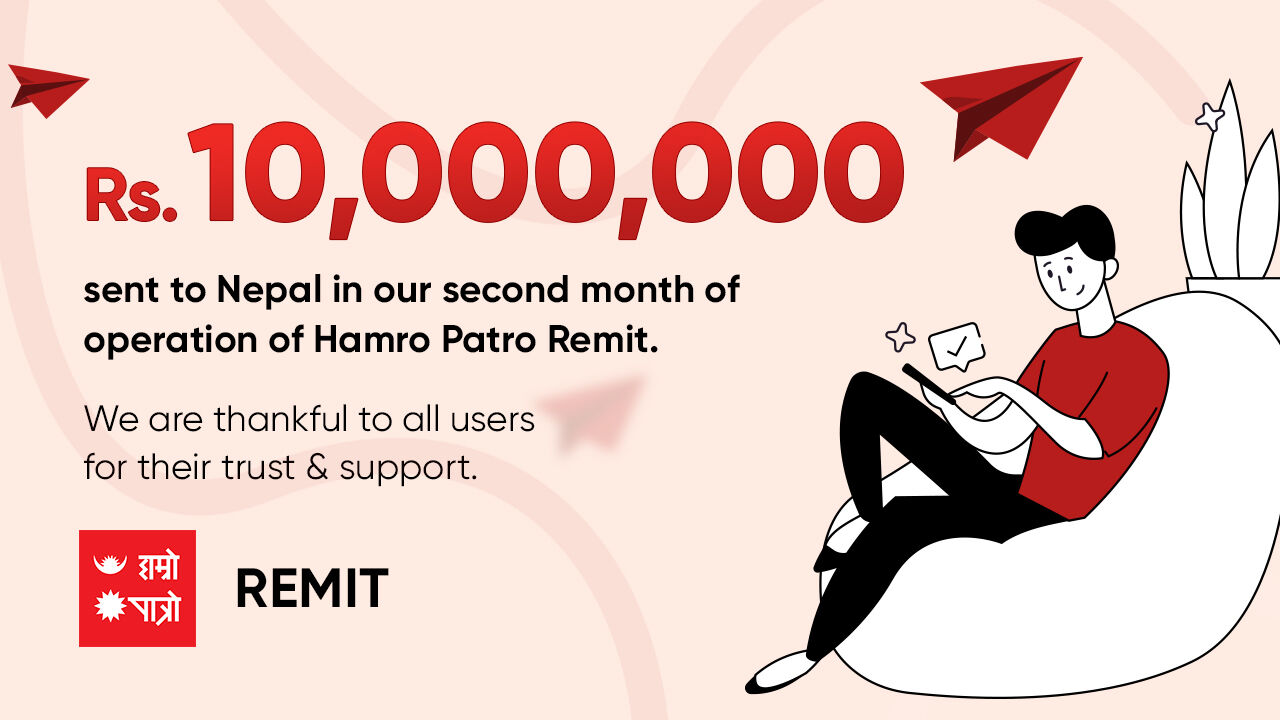 यो अवसरमा हाम्रो पात्रो इंक. का सीईओ शंकर उप्रेतीले प्रयोगकर्ता तथा साझेदार धन्यवाद व्यक्त गरेका छन् । ‘यसबाट अझ काम गर्न थप हौसला प्राप्त भएको छ । म सबै प्रयोगकर्ताहरूलाई उहाँहरूको समर्थन र विश्वासको लागि आभार ब्यक्त गर्दछु। हाम्रो लक्ष्य भनेको नेपाली प्रयोगकर्ताहरूलाई कम शुल्कमा नेपालमा पैसा पठाउने सुविधा दिनु हो, अबको केहि समयमा अस्ट्रेलिया, जापानबाट पनि यो सुविधा सुरु गर्ने गृहकार्य गर्दैछौ। उनले भने । त्यसै गरि ‘इन्स्ट्यांन्ट ट्रान्सफर’ सुविधा चाडै आउने शंकर उप्रेतीले बताए । जस अन्तर्गत पैंसा पठाएको केहि समयमै नेपालको बैंक खाता अथवा मोबाइल एपमा पैसा डिपोजिट हुनेछ।