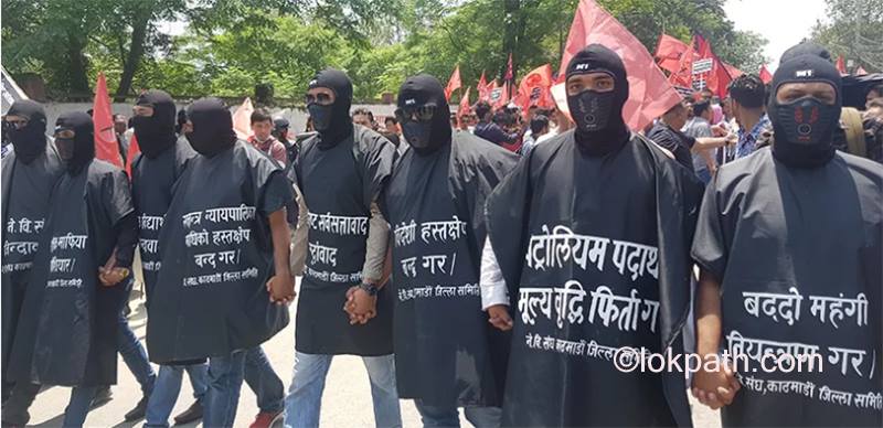 आफ्नै पार्टी सभापति र वर्तमान नेकपा नेतृत्वको सरकारविरुद्ध सडकमा उत्रिएका नेविसंघका केही कार्यकर्ताहरुले विरोधको प्रतिकात्मक स्वरुप पूरै शरीर ढाकिने कालो कपडा  लगाएको नेबि सघनेता निरन्जन थापाले बताए  ।