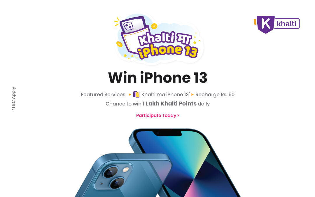 अन्तिममा एक जना भाग्ग्यशाली विजेताले आइफोन १३ प्रदान गरिन कम्पनीले जनाएको छ । साथै दैनिक एक जना भाग्ग्यशाली प्रयोगकर्ताले एक लाख खल्ती पोइन्ट्स जित्नेछन् ।