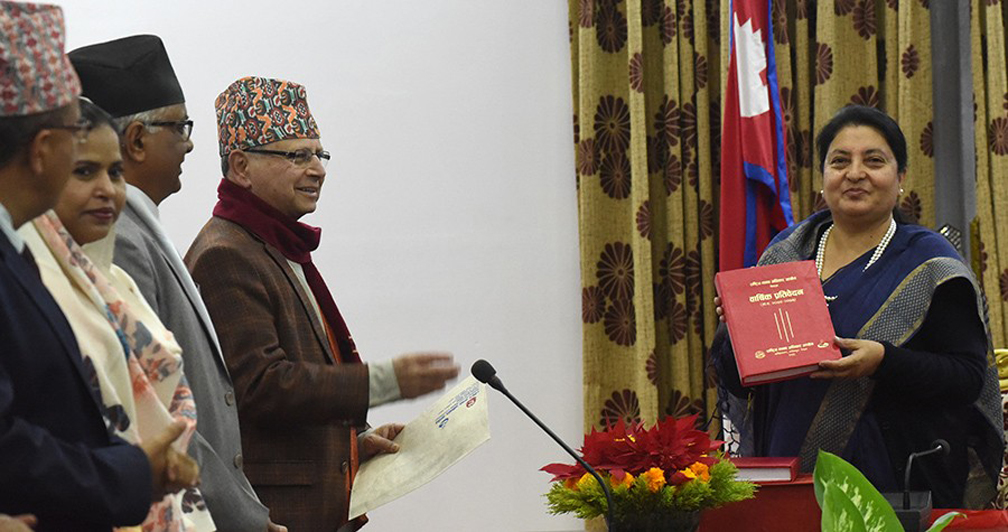 आयोगले नेपालको संविधानको धारा २९४ बमोजिम सो प्रतिवेदन पेश गरेको हो ।